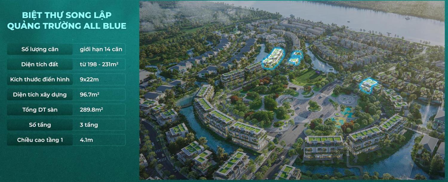 + 368 căn biệt thự đơn lập – song lập cao cấp với diện tích 160-600 m² và có mặt tiền từ 6-8m, mật độ xây dựng 30-60% được thiết kế với 3 tầng cao và mặt tiền rộng rãi từ 9-20m.