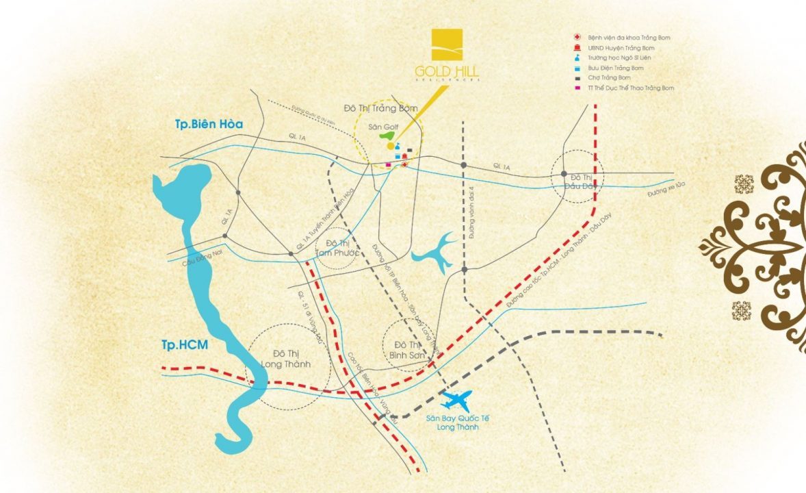 Gold Hill nằm tại khu vực có hạ tầng giao thông vô cùng phát triển. Dự án nằm tại khu vực cửa ngõ phía đông của Thành phố Hồ Chí Minh. Dự án có các tuyến đường huyết mạch đi qua như tuyến quốc lộ 1A, cao tốc Sài Gòn – Long Thành – Dầu Giây, tuyến đường sắt Bắc – Nam. Ngoài ra, đường hàng không cũng vô cùng thuận lợi bởi dễ dàng liên kết với sân bay quốc tế Long Thành.