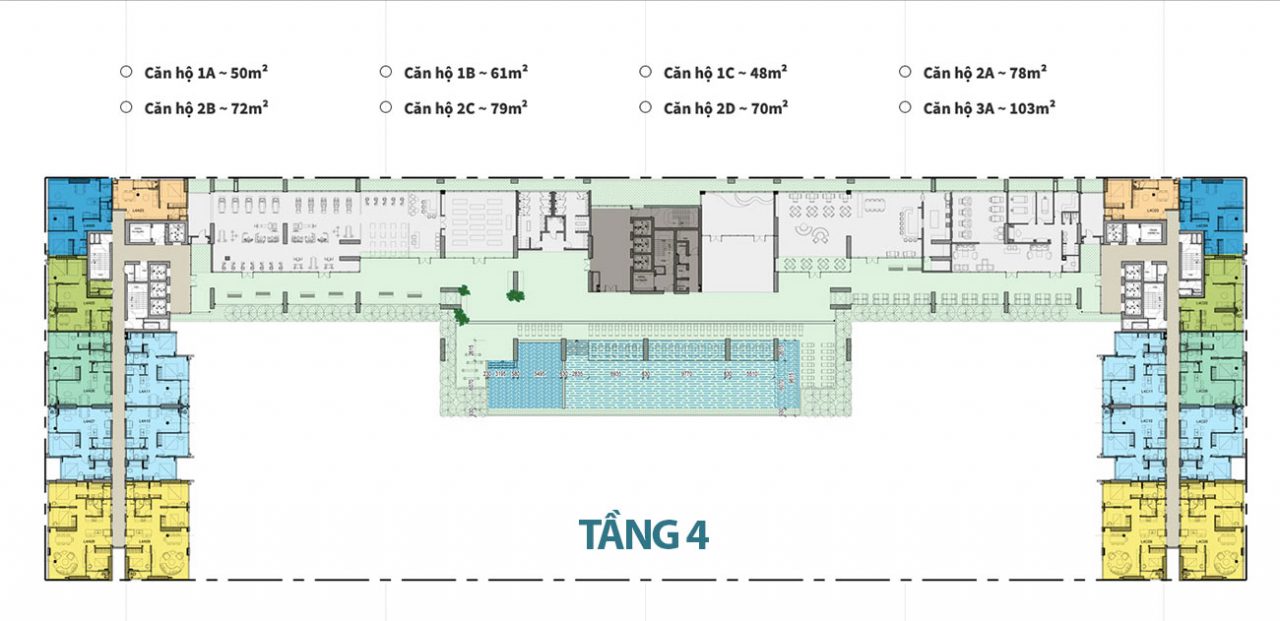 - Căn hộ 01PN: 162 căn có diện tích 48 – 61m2
