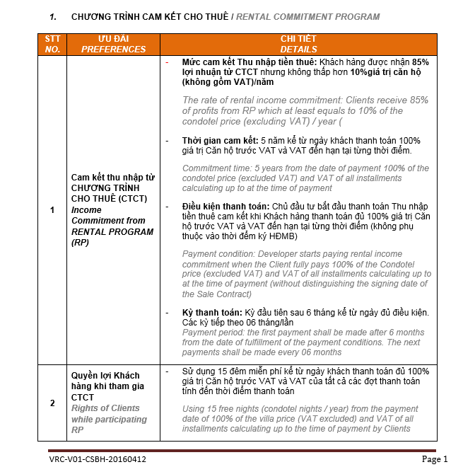 Đầu tư vào dự án Melia Vinpearl Danang Riverfront, các nhà đầu tư được đảm bảo tính an toàn và nguồn lợi sinh lời ổn định. Chủ đầu tư cam kết mức lợi nhuận sinh lời tối thiểu 10%/năm trong 5 năm đầu. Ngoài ra, lợi nhuận từ việc cho thuê lại căn hộ được CĐT chia sẻ lên tới 85%.