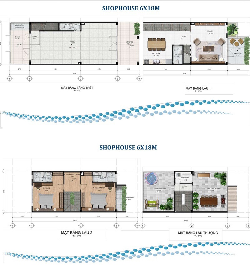 • Nền Shophouse: 6×20; 8×20 – 4 tầng