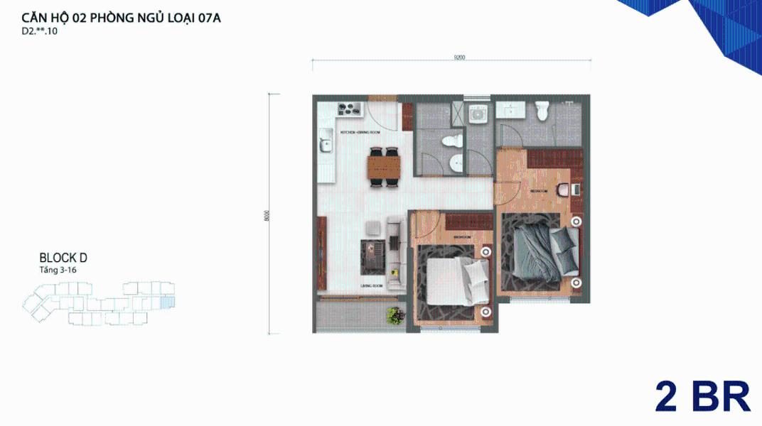 Căn hộ 2 PN+ 2WC: Giá bán 2,69 Tỷ đồng/căn