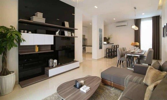 Hướng tới phân khúc khách hàng trẻ thành đạt, Sky Center ưu tiên sử dụng tone màu trắng đen, nâu gỗ, be xám…tạo không gian trẻ trung năng động cho tổng thể căn nhà.
