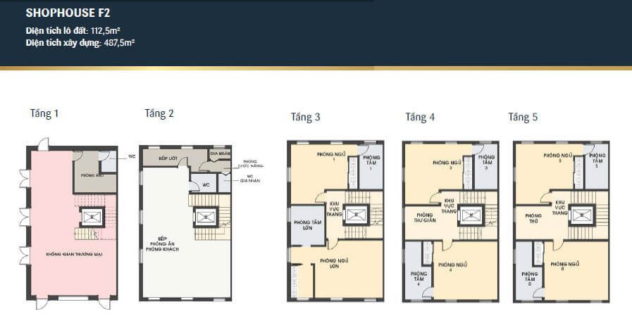 + Biệt thự loại B: 358m2 (5 PN+ 2WC)