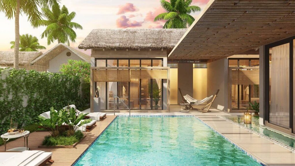 Nhà mẫu dự án Sun Premier Village Kem Beach Resort được hình thành lấy cảm hứng theo phong cách làng chài xưa, đậm chất nghỉ dưỡng giúp cho mọi du khách cảm nhận được sự thoải mái khi hòa mình vào không gian thiên nhiên và có được kỳ nghỉ dưỡng sang trọng.