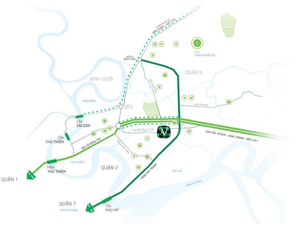 Trong khu vực, vị trí này của dự án được đánh giá cao; đẹp vào hàng đắc địa hàng đầu và rất thuận tiện cho việc giao thương kết nối vùng nhờ hệ thống các tuyến đường huyết mạch. Chỉ trong thời gian ngắn, cư dân sinh sống tại dự án sẽ tới với các vùng trung tâm, lân cận như: quận 1; quận 2; TP Thủ Đức.