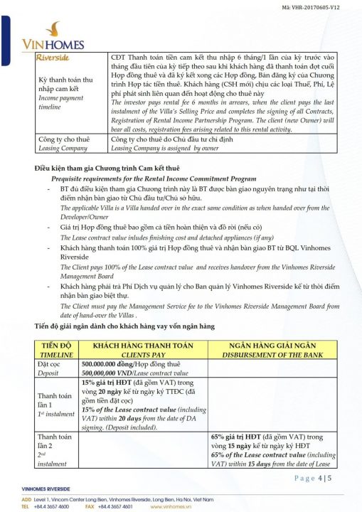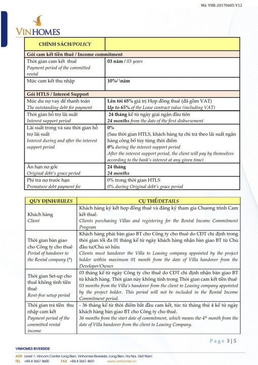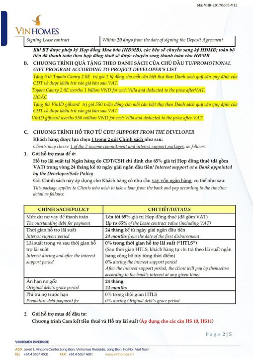 - Ngân hàng hỗ trợ vay vốn: Techcombank; Ngân hàng SeAbank