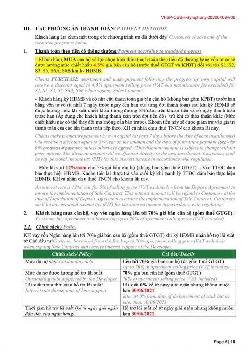 Sản phẩm đang mở bán Vinhomes Symphony Hà Nội