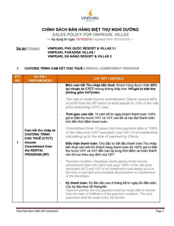 Biệt thự Vinpearl Discovery 1 Phú Quốc được khai thác và phát triển dưới 2 hình thức: mua bán – chuyển nhượng và cho thuê biệt thự. Dự án Vinpearl Discovery 1 Phú Quốc có mức giá trên thị trường giao động trong khoảng 28.6 – 54.5 triệu/m2. Đây là mức giá vô cùng cạnh tranh so với các dự án cùng phân khúc trong khu vực. Vinpearl Discovery 1 Phú Quốc là một dự án tiềm năng và mang tới nhiều cơ hội cho các nhà đầu tư.